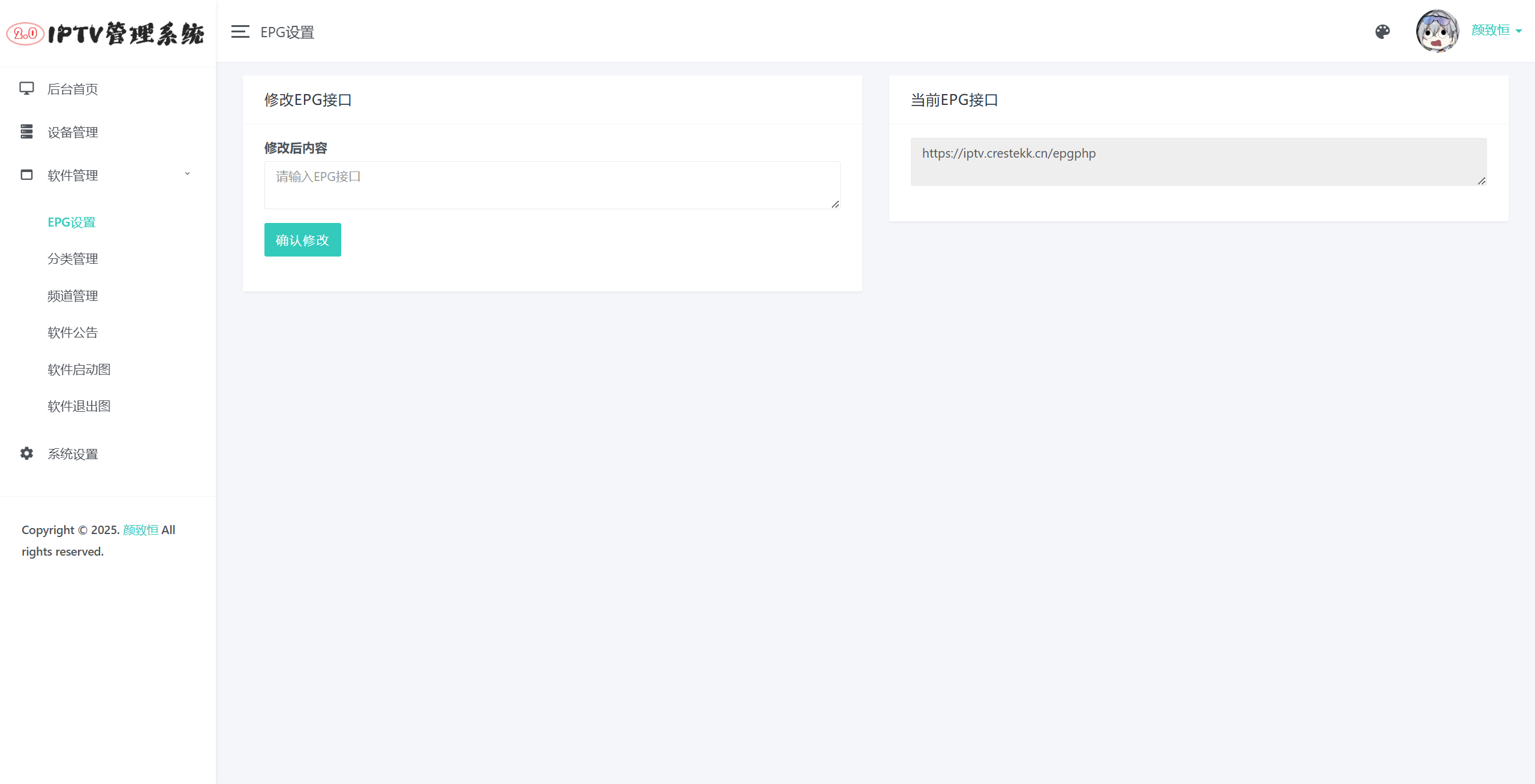 这是一个电视直播源管理系统,主要用于对接定制的DIYP影音,实现定制化的电视直播软件。软件对接教程请看后面。灵感来源于恩山无线论坛内的《IPTV管理系统》,因为有些功能我用这不是很方便,所以自己写了一个,感谢大佬们提供的DIYP软件,我只是根据接口写了后台。